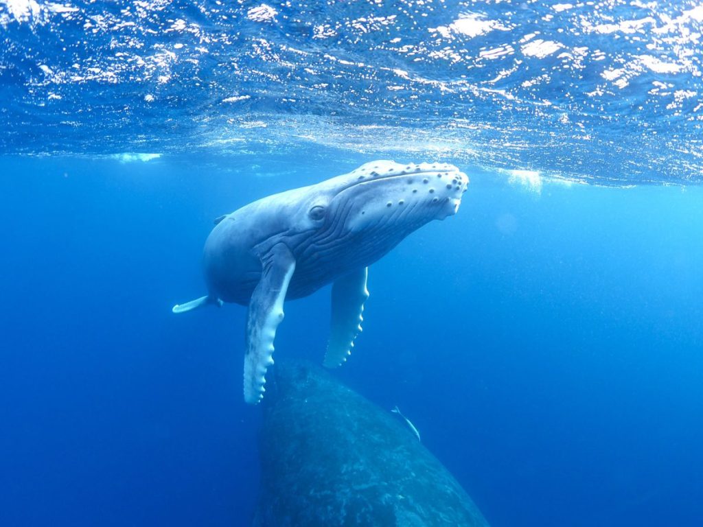 ザトウクジラは成体の体長約12~14メートル、体重約30トン超にもなる大型のクジラ。夏場はロシアやアラスカなどの冷たい海で餌を食べ、冬季に繁殖や子育てのため、国内では沖縄や小笠原などの暖かい海域へ移る。奄美近海でも子クジラが誕生しており、毎年里帰りする個体も確認されている。