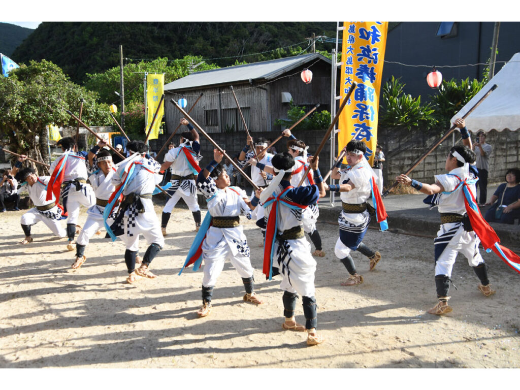 旧暦8月15日の十五夜を前にした5日、鹿児島県奄美大島・大和村の6集落で豊年祭が行われた。大和浜集落(中井良二区長、150世帯253人)では相撲や集落伝統の「棒踊り」「ナギナタ踊り」が披露され、地域住民や出身者が一緒になって家内安全と五穀豊穣(ほうじょう)を祈願した。