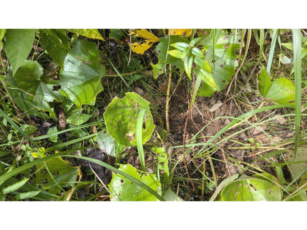 盗掘されたとみられるダイサギソウ=6日、奄美市名瀬(同市提供、釣谷洋輔さん撮影)