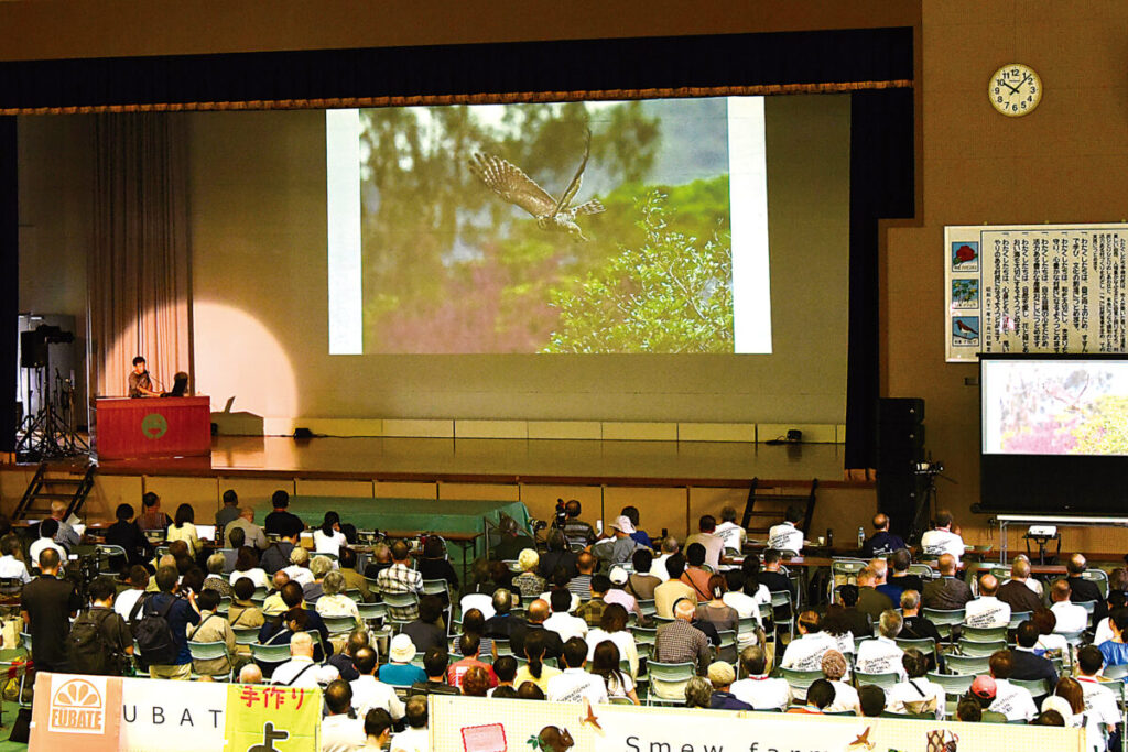 与名さんは奄美大島でのサシバの暮らしぶりについて、奄美の森がねぐらとして利用しやすく、餌となる虫が多いことなどにも触れ、「サシバがいるのは自然が豊かだから。この自然環境を保ち、次の世代につなぐことが大切」と語った。