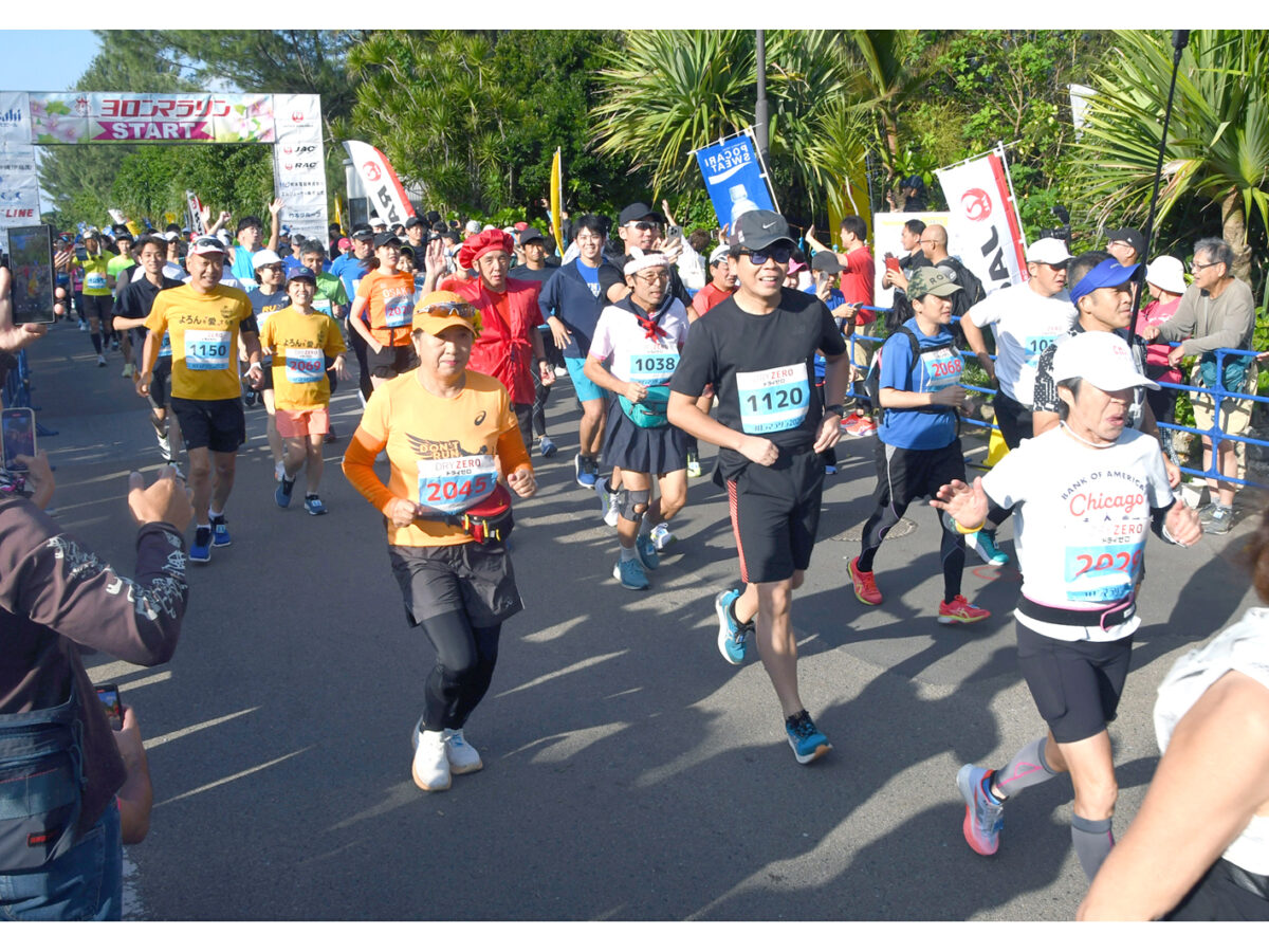 大会には全国各地からフル823人(フル229人、ハーフ594人)がエントリー。うち8割超が島外からだった。766人(フル202人、ハーフ564人)が完走した。