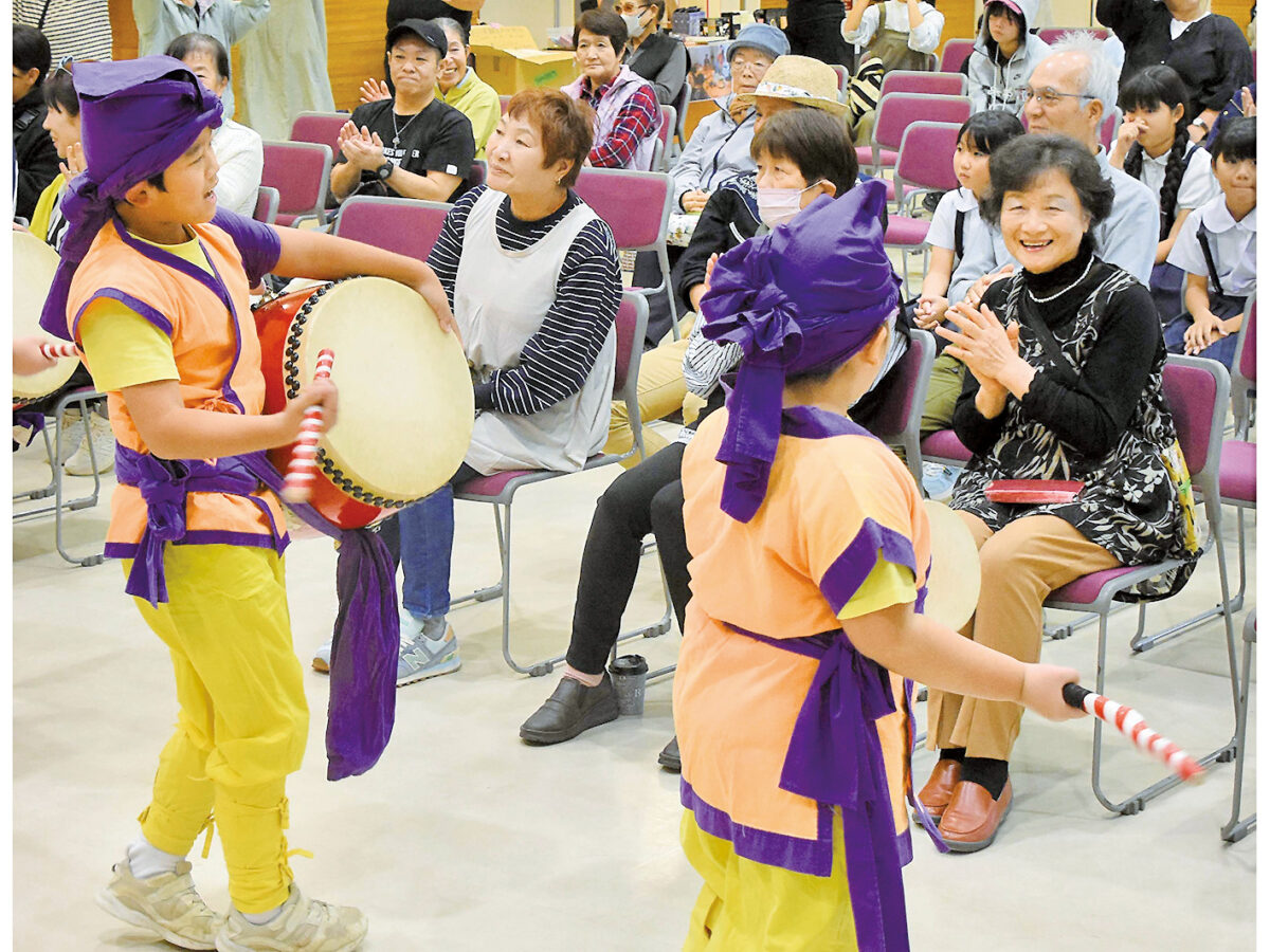 鹿児島県喜界町のボランティア団体「にじの結い」(藤原実子代表)が今年3月、地震や豪雨で大きな被害を受けた石川県能登半島の被災地で復興ボランティアを行ったことが縁で、同県輪島市町野町の仮設住宅に暮らす女性組織「町野町バーバーズ」(メンバー8人)の3人が、6日から喜界島を訪れている。7日は同町役場で一行を歓迎するチャリティーイベントがあった。歌やダンス、太鼓演奏などのステージ発表、町野町バーバーズお手製の小物や能登特産品の販売会があり、直線距離800キロを超える2地域の相互交流を楽しんだ。