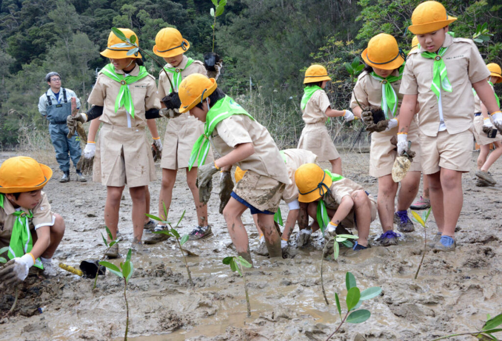 瀬戸内町では、町や漁協、民間企業などで構成する「瀬戸内町ネリヤカナヤの海協議会」(会長・上田哲生瀬戸内漁業協同組合代表理事組合長)が、2024年の団体設立前から同町小名瀬の干潟でマングローブ苗木の植樹を続けている。