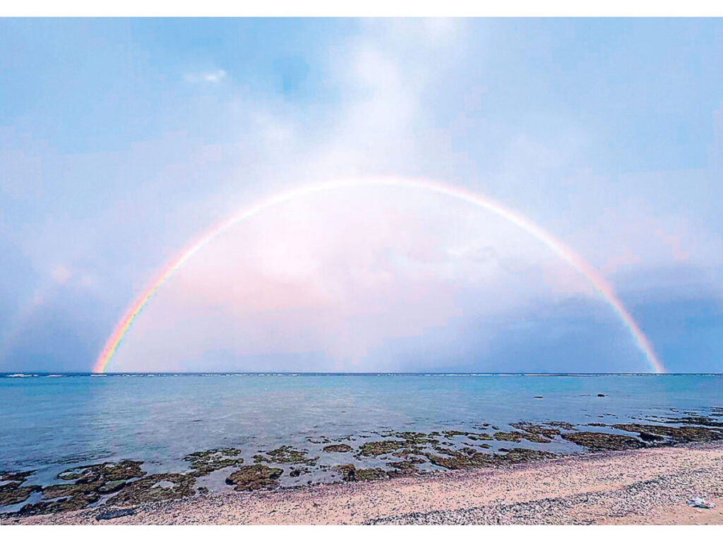 鹿児島県 徳之島町下久志の海岸で6日夕、虹が二重に掛かる「ダブルレインボー」と呼ばれる現象が見られた。スマ―トフォンで撮影した下久志の畑山育男さん(77)は「77歳の年に七日節句の前日に見られたので、縁起が良い感じがしてすごくうれしかった」と喜んだ。