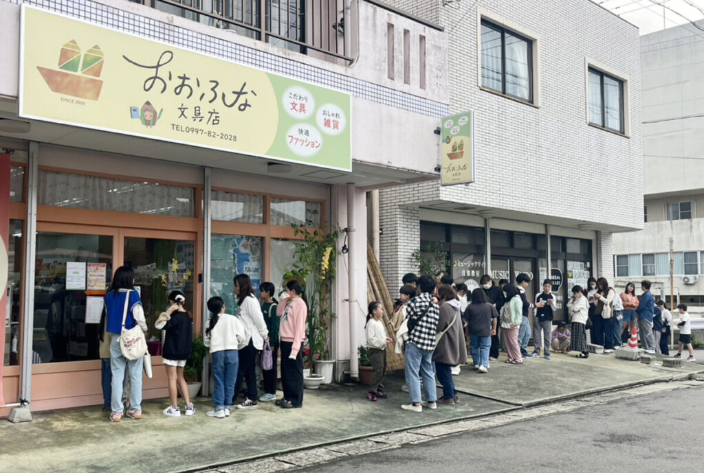 ドロップシールの入荷日に行列ができた大船文具店本店=2025年12月29日、徳之島町亀津(大船文具店提供)