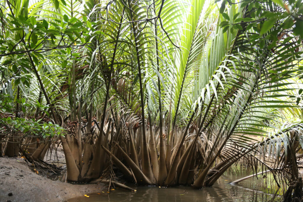 西表島のマングローブ群落に生育するニッパヤシ