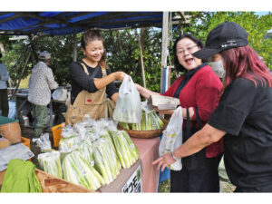 旬の味マコモに多くの客 龍郷町秋名で直売会