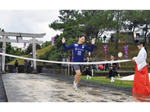 鹿児島県沖永良部島・和泊町の高千穂神社で1日、参拝一番乗りを競う「新春福男・福女参り」(同神社奉賛 ...